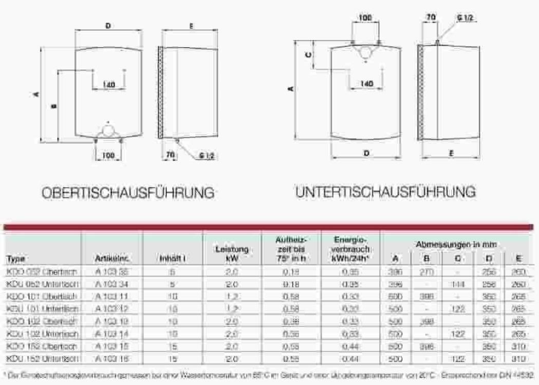 Austria Email Kleinspeicher 5 Liter druckfest, Untertisch