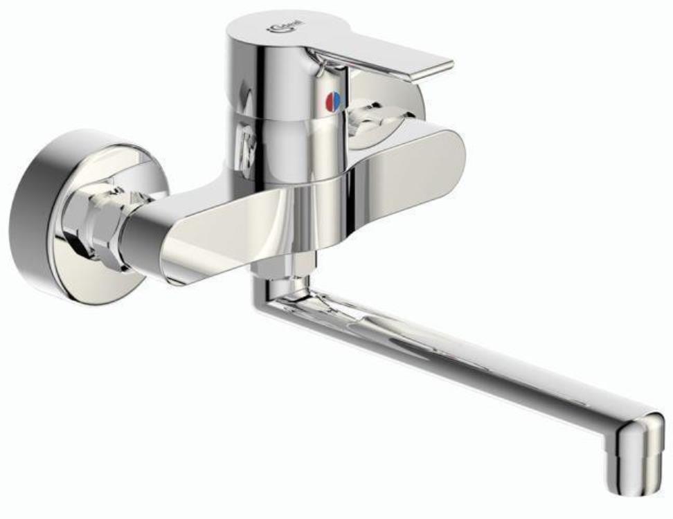 DN 15, Wandmontage mit 360° schwenkbarem Rohrauslauf und Luftsprudler, S-Anschlüsse: verstellbar von 127 - 173 mm, Ausladung: 258 mm, Bedienungshebel aus Metall, Kartusche: mit keramischen Dichtscheiben, Kartuschenübersetzung aus Edelstahl, Schwenkbereich 90°, mit integriertem Fettreservoir...