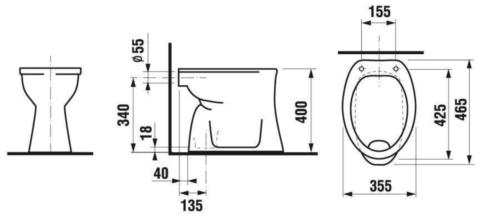 35,5 x 46,5 x 40 cm, aus Sanitärkeramik, Flachspüler, Abgang innen senkrecht, Spülmenge 6 Liter