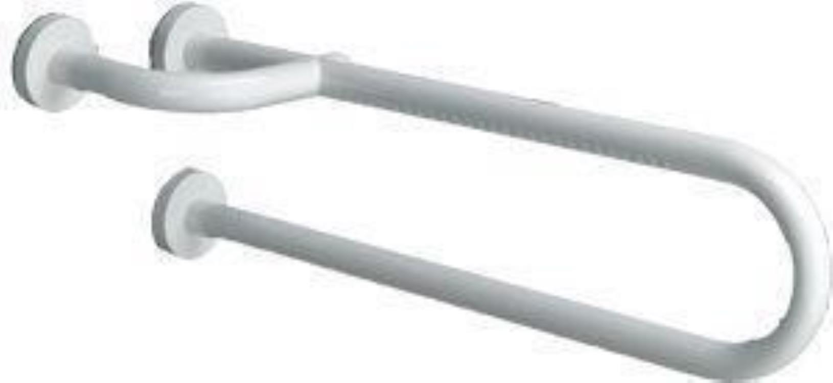 links und rechts montierbar, mit 2 Griffhöhen aus korrosionsbeständigem Epoxydharz, pulverbeschichtetem Aluminiumrohr mit ergonomisch geformter Polyamidgriffleiste, inklusive verdeckter Zentralbefestigung sowie Inoxschrauben und Polyamiddübel. Belastbarkeit bis 100 kg, weiß